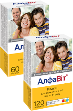 У вітамінно-мінеральних комплексах АлфаВіт® добова доза необхідних вітамінів та мінералів розподілена на три таблетки. Кожна з трьох таблеток вітамінно-мінерального комплексу АлфаВіт® – це самостійний збалансований і безпечний комплекс, який має певний, чітко виражений вплив на організм дорослих і дітей.